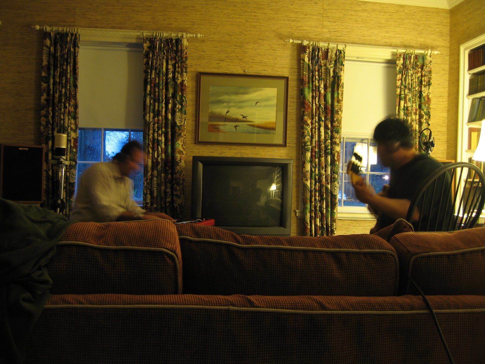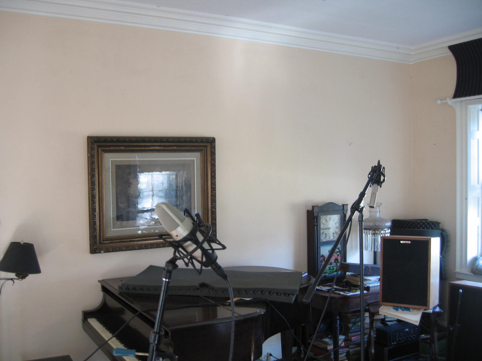 Room tone: Klipsch speaker powered by a handmade tube stereo (also fed the Jensen cab for guitar) mic'd with Larry's Royer ribbon mic
